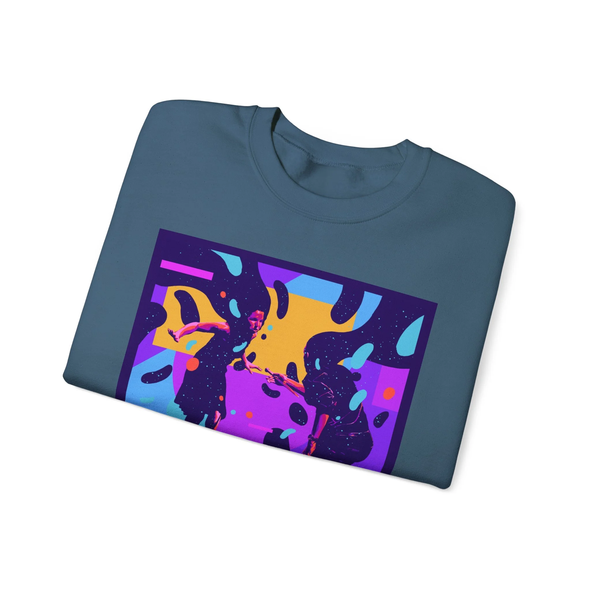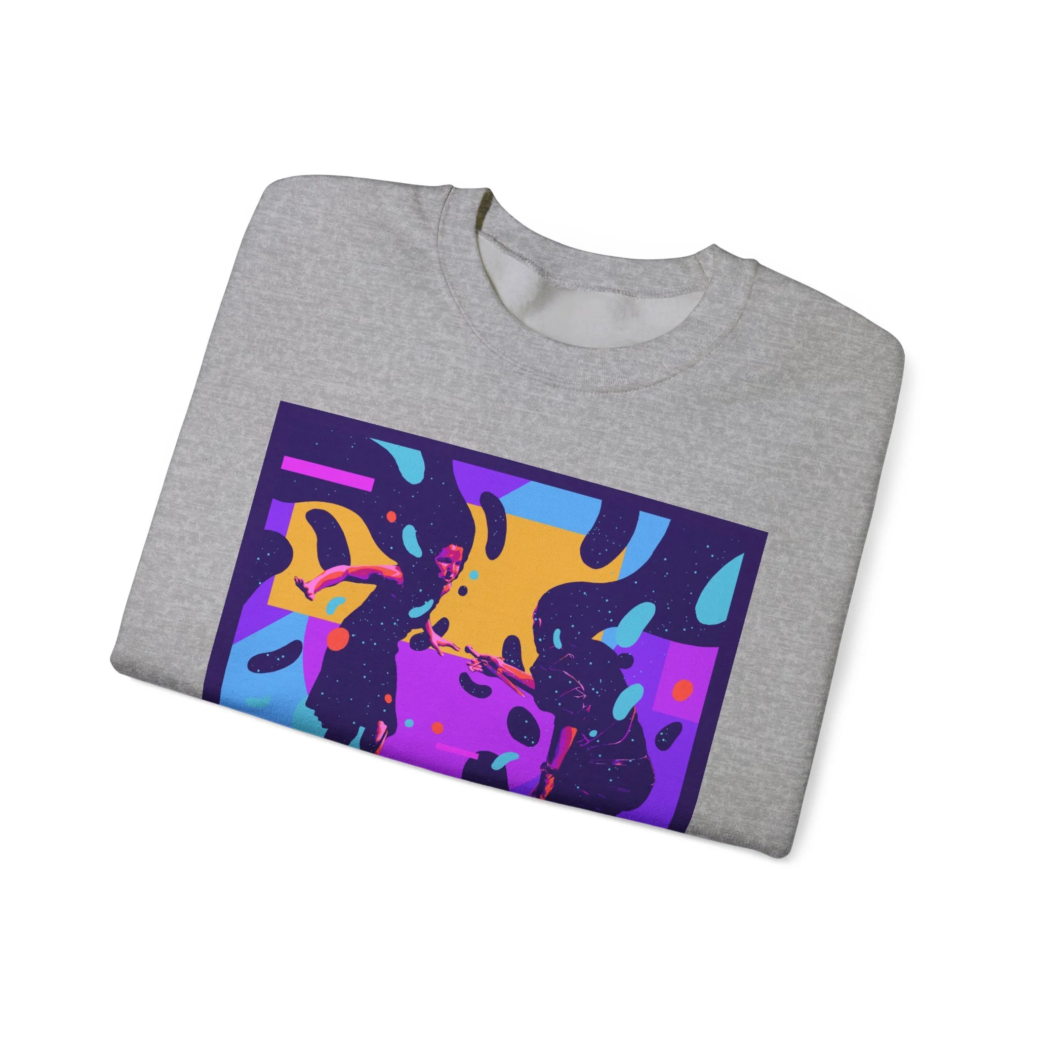 A soft, midweight crewneck with bold, poster-style artwork that reads like a snapshot from a downtown music night. The graphic’s saturated purples, blues and golds bring movement and stage lights to a clean white sweatshirt, creating a wearable keepsake for people who live for live shows and small-venue energy. It feels lived-in from the first wear: roomy classic cut, ribbed collar and cuffs that hold their shape, and no itchy tags. Place the embroidered accent at the chest or wrists to add a subtle handcrafted touch that complements the loud, retro concert print.